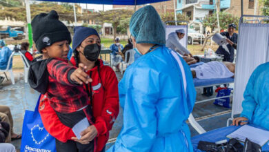 Венесуэльскому ребенку помогают на мероприятии, организованном УВКБ ООН в Лиме, Перу. Кризис в Венесуэле: ООН продолжает предоставлять гуманитарную помощь на…